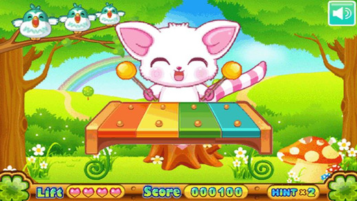 生动有趣的音乐游戏《动物学钢琴》来啦!森林里的动物们都想学习演奏乐器,可爱的白色小喵喵拿着两个小锤锤来找你了,希望你能教她弹琴。这么可爱的小喵喵,你怎么能拒绝呢?