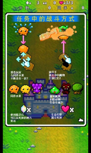 3、可爱水果勇者们用自己的果汁与怪物们战斗;