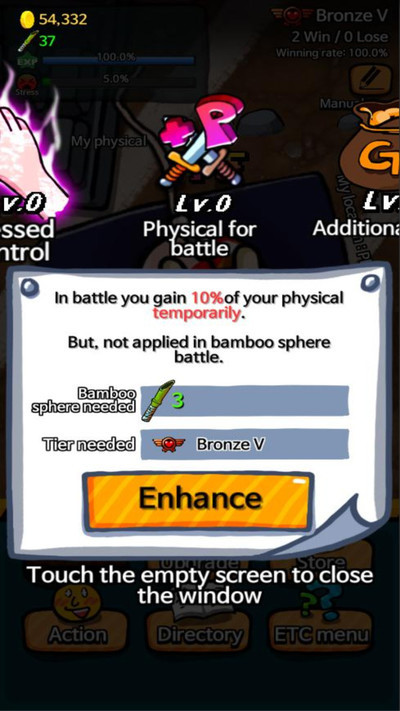 3、简单的游戏操作,点击屏幕控制一双手敲击鼠标、键盘,打怪升级,成为职业玩家