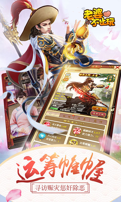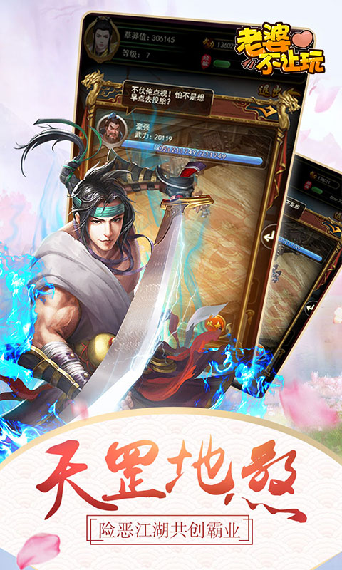 《老婆不让玩》是一款策略型手游、以第一视角生动呈现,娶妻纳妾、生孩养娃、山寨争霸、广收梁山豪杰、玩家PK、据点攻防,多人社交等精彩玩法。引人入胜的关卡剧情,斗智斗勇的玩家对抗。告别枯燥乏味的刷怪升级,抛弃模式单一的经营玩法,来一场波澜壮阔的江湖争斗!