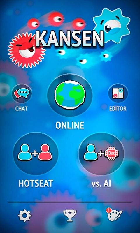 《感染Kansen》是一款战略棋盘游戏。它基于类似于Ataxx和Hexxagon的游戏。游戏的目标是比对手更多的部分(细菌)。当你移动目标单元周围的所有对手的棋子时,就会变成你的棋子。目标是要比对手有更多的棋子。