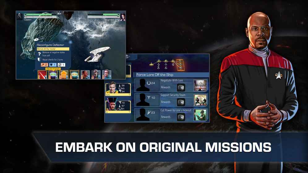 1、组装你的船员从最喜爱的星际迷航人物数百名来自原系列,下一代,深空九号,旅行者,和企业,各有独特的技能和能力;