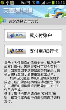 3、可通过翼支付、支付宝、银行卡等方式在手机上支付票款;
