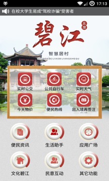 北滘碧江,采取不记名形式倾听民众最真实的声音,让他们为北滘碧江的发展提出最宝贵的建议意见,并展示北滘碧江的精彩时刻和记录社区内大大小小的成长经历,成为一个电子资料库,同时,提供一系列生活助手(实时公交、违章查询、实时天气……),用行动靠近群众的生活,便利民众的出行。