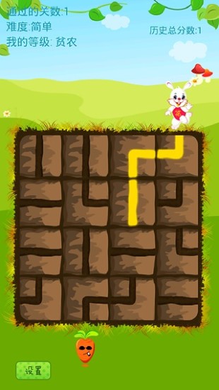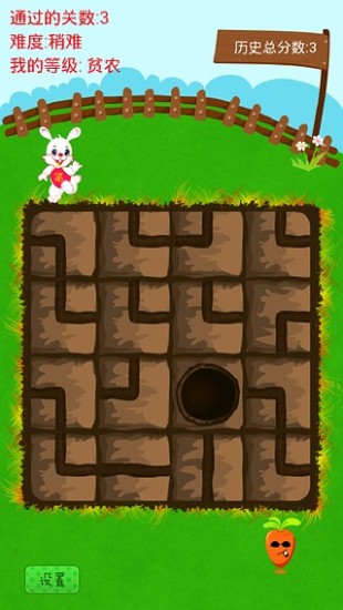 小兔子们辛苦劳作,种植了很多美味的萝卜,要收获了,但一个萝卜很聪明,设计了机关,小兔子们通过机关才能获得萝卜,手指轻划手机屏幕来滑动每一段小路,通过类似魔方的上下左右移动,设计出一条路让小兔子到达终点。不要掉入“坑”中哦,大家慢慢体验吧。