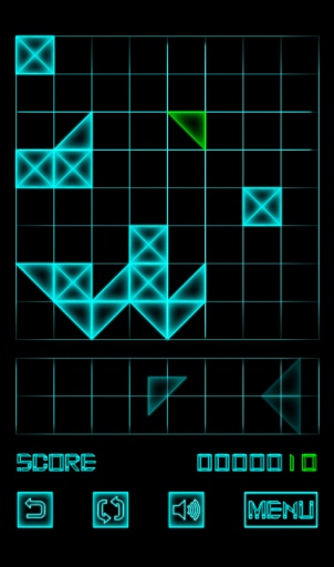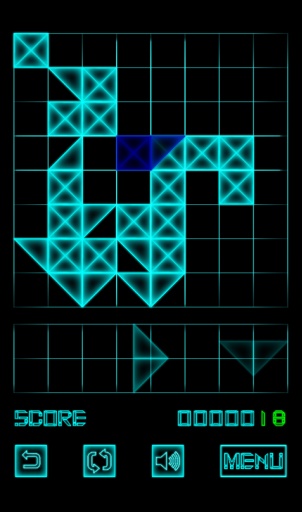 一款休闲益智游戏。游戏玩法简单,很适合用来打发时间。黑色背景蓝亮色图案让这款游戏并不伤眼,游戏采用了最简洁的方形和三角形构成出了一些非常复杂的图案,印证了“极繁即极简”这句话。