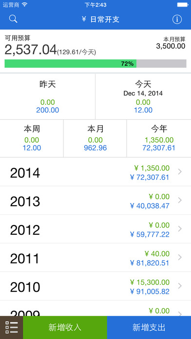 11、非常直观的历史浏览功能,方便地知道你每天/每月花了多少钱;