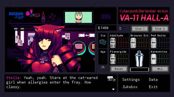 “虽然游戏中没有对话选项,VA-11 HALL-A却创造了扣人心弦的个人化叙事体验。很多游戏理论家曾声称故事应当扮演游戏机制的支撑物,VA-11 HALL-A却另辟蹊径,开创了自己的规则。”