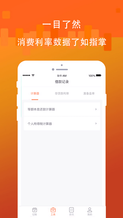 花几秒随手记一笔,收入和支出清晰比对!计算公式囊括全面,个人所得税计算,存取利率计算,以及准备金率查询等等,省去了全网搜索找公式的麻烦,简约的操作流程,便捷的计算工具,让您轻松上手。