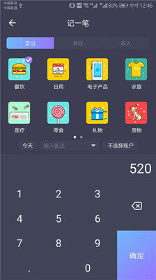 记账备注,在输入消费金额时可以添加自己的备注;