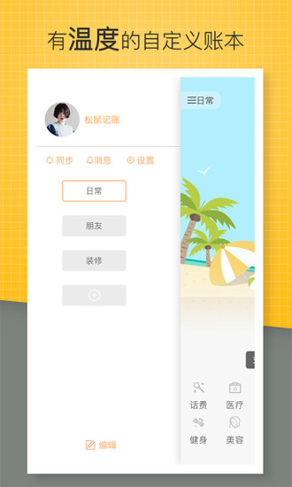 5、多账本记录:日常账、校园账、出差账、装修账、宝宝账、旅游账、汽车账,多种情景账本,满足你的生活需要,还可以自定义新增账本哦。