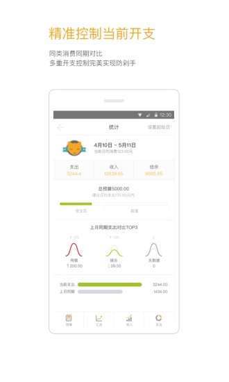【强大的统计分析】 分类饼图、柱状图以及收支折线图,完美的统计金钱流向,让每一笔消费都有据可查。此外,还支持多账本记账、预算提醒、多币种自由切换等丰富功能;