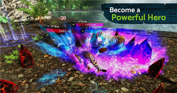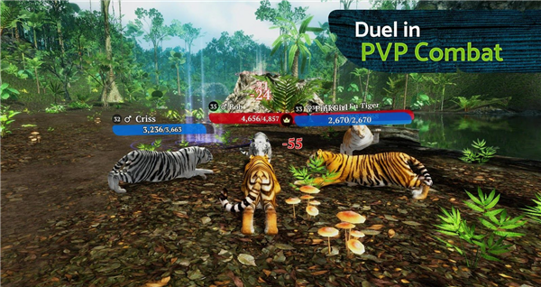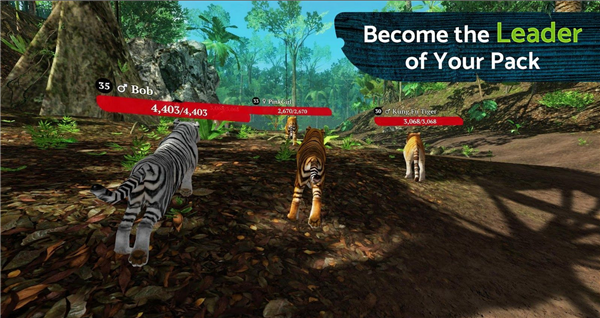 游戏有一个高水平的图形平台,你会发现真正的动物,享受美丽的环境!你可以选择和其他玩家一起狩猎模式,或者尝试PVP模式,对抗敌人的老虎队。