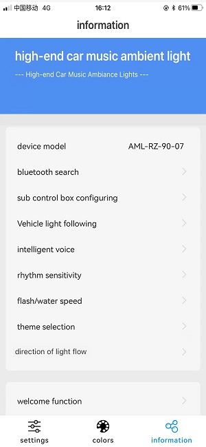 3. 连接成功后,即可通过lampfrgn软件控制车载氛围灯的各种功能。