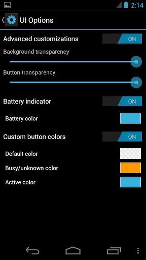 1. 高度自定义界面:用户可以自定义按钮在默认、繁忙/未知、激活状态下的颜色,以及背景和按钮的透明度,让界面更加个性化。