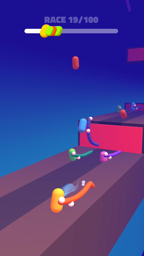 3. 收集道具:赛道中会随机掉落各种道具,如增加撑杆长度的方块等,玩家需要在第一时间拾取这些道具,以增强自己的竞争力。