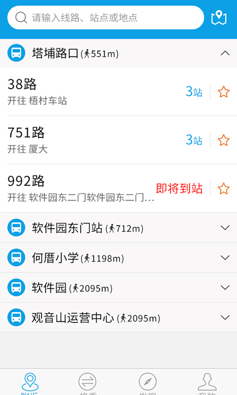 3. 附近站点查询:根据用户所在位置,自动推荐附近的公交站点。