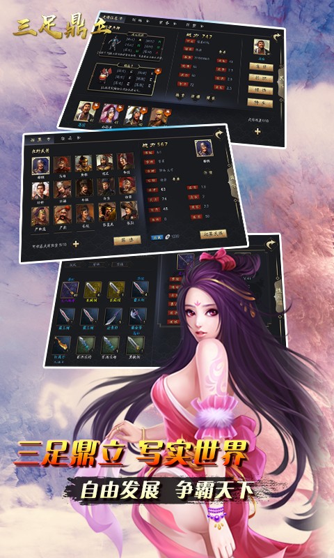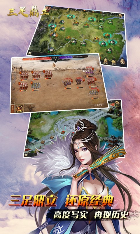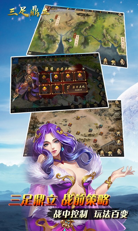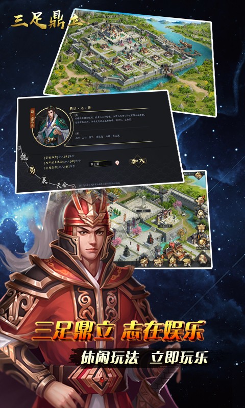 《三足鼎立》是一款纯正三国题材的策略性游戏。在这里,你将跟着历史的步伐重走三国之路。你可以拥有自己的专属城池,招募心仪的三国武将,带领他们攻城略地,收获属于自己的荣耀。面对强敌,无需恐惧,抓住敌方弱点,运用极致的策略排兵布阵,会是你扭转乾坤的关键。