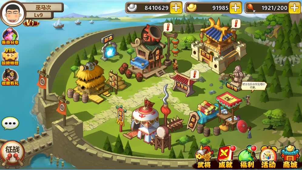 1、游戏卡通风格的画面非常的出色,战场也比较逼真,你一开始拥有一个自己的城池。