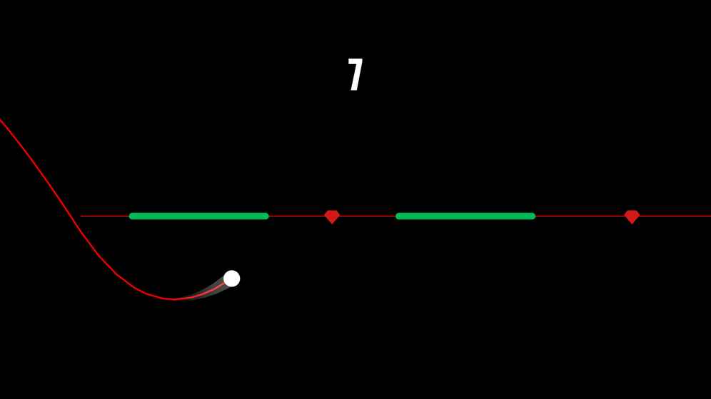 注意,小球越过红线后松开手指将不能再次加速,只能坠落,需要等到红线以下才可以再次加速。