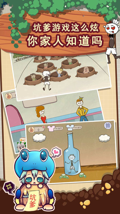 新年到了,带上小伙伴一起快乐出发吧!还记得那款让你抓狂到哭笑不得的坑爹游戏么?还记得那款需要玩家打破常规思维,抓住每一个小细节,发挥自己的想象力的坑爹游戏么。游戏的关卡很多,每个关卡的难度都是不一样的,当你闯关之后还能获得相应的金币,当你某个关卡过不去的时候就可以使用金币跳关。这样一款搞怪而又不按常理出牌的游戏,受到了很多玩家们的喜爱!