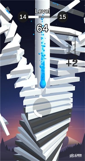 玩家控制带颜色的小球从塔顶往下冲;