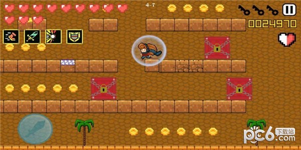 是一款横版的像素冒险游戏,画面非常复古,让回到80、90年的街机时代。非常考验手指灵活性的游戏,可以自由闯关,探索地图。