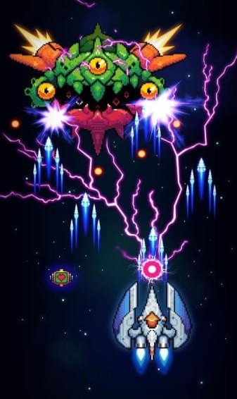 《银河卫队》是一款精品竖版飞行射击手游。游戏最值得一提的就是其像素风格的画面了,相当的复古。但这并不意味着游戏的画面就简陋,恰恰相反的是游戏的弹幕超华丽,炫丽非常。更有多样的战机,多种武器升级模块,让你享受竖版射击的魅力。