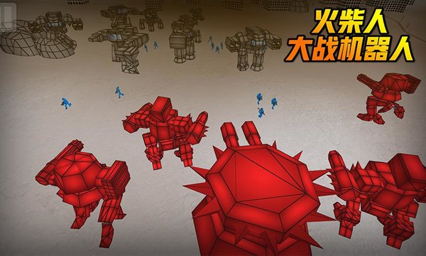火柴人大战机器人是一款充满科技感的3d机甲战争模拟游戏。玩家将置身于高度发达的未来战场,通过排列布局火柴人战士、坦克、机甲机器人等军队单位,与敌对的机甲火柴人军队展开激烈对抗。游戏中的火柴人战士和机器人都拥有各自独特的技能和武器,如光环射击步枪、光环电磁炮、反重力狙击炮等高科技装备,为玩家提供了丰富的战斗选择和策略搭配。在高度逼真的模拟战争中,玩家需要精心策划战术,合理利用资源,训练军队,以取得最终的胜利。