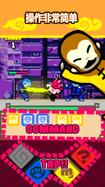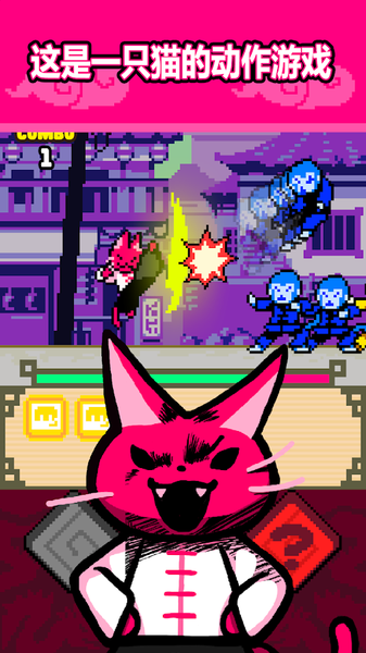 一款彩色像素风横版动作冒险手游,游戏中玩家将扮演一只身怀强大中国功夫的喵星人展开战斗冒险之旅,简单易上手的操作,拥有丰富的剧情冒险。