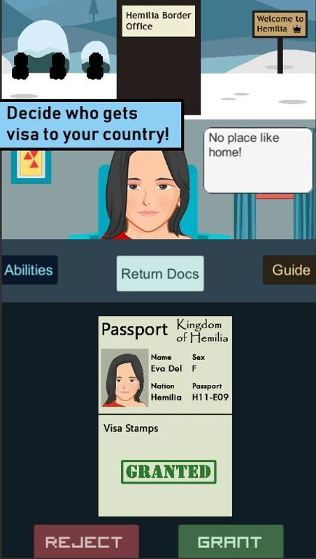 虚假证件Bad Papers的创意非常的有趣,你将扮演海关安检人员,并对每一个过关检查的人进行身份核实,你需要通过他们的面貌,精神状态和护照等等各种细节进行推理解谜,找到漏洞,如果一旦证实这个人的身份有问题你就可以直接将其逮捕抓走,当然如果你抓错人了可是会收到非常严厉的惩罚哦!你敢来挑战吗?下载虚假证件Bad Papers开始游戏吧。