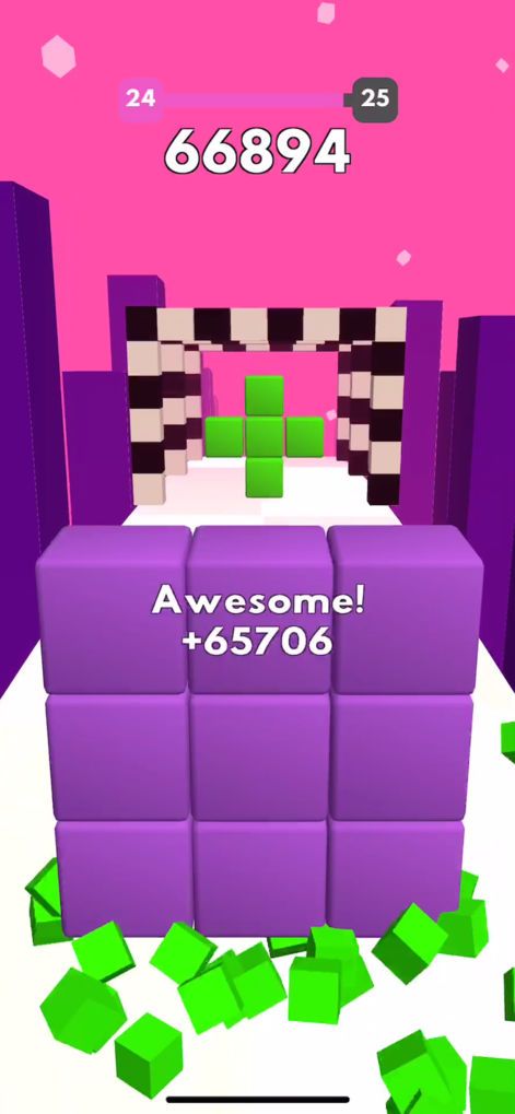 1、整个游戏画面色彩非常的丰富,可以看到,这些方块都是错乱的放置的,就是为了给小球的穿越造成一定的苦难,形成一种错落的美感。