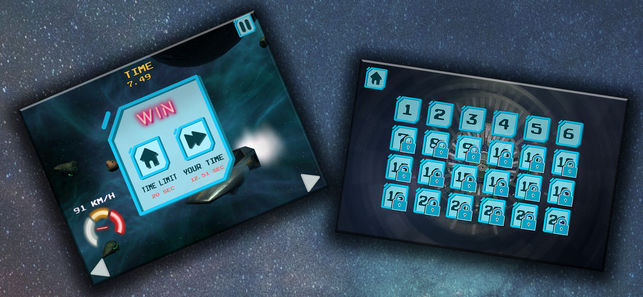 比赛你的飞船在整个星系的具有挑战性的轨道,躲闪小行星,避开障碍物,到达终点线前的时间到了。