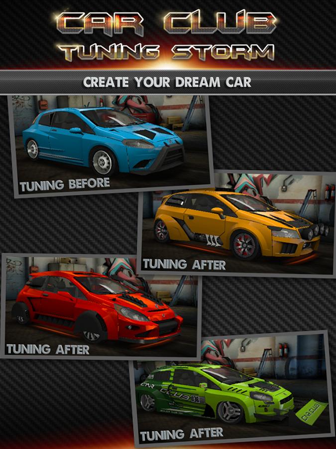 《赛车俱乐部:改装风暴》是一款高自由度的赛车游戏,在游戏中,你可以自由改装自己的赛车,每辆车都有上百个可供更换的部件,游戏的高级3D模型带给你最真实的改装体验,快来改装定制属于你自己的爱车吧!