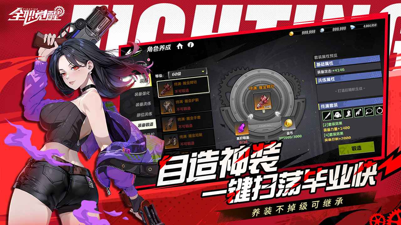 3. 装备系统丰富,有多种强化、镶嵌玩法。