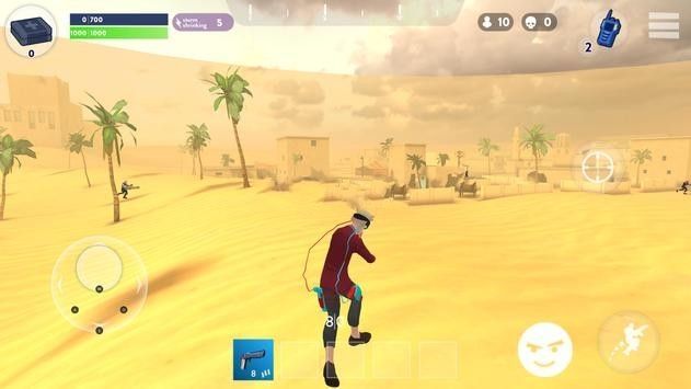 《格斗之夜大逃杀》游戏是一款射击战争类游戏,玩家在沙漠之中与多名玩家进行生存对决,利用地图中的资源武器装备进行武装自己,利用走位和有利的地形进行战斗射击,消灭所有的踢人才能获生存,玩家就是在这么残酷的环境中进行冒险挑战,不仅要面对恶劣的环境还要残酷的生存下去。