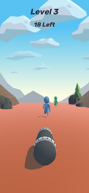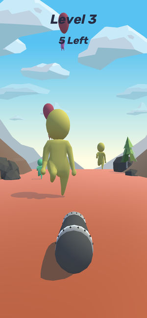 你可以看到奔跑的小人,能够进行炮火射击小人,击中每个小人才可以过关哦。
