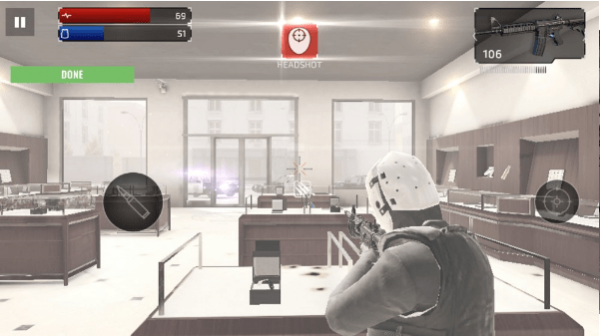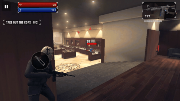 被游戏中的场景吓到了,画质真的超级好的,还有这剧情的展示戏剧性也太强了,挺喜欢这样的射击游戏,刚开始进入游戏呈现的是一个小型的珠宝店,要对付的人有很多,出去后还会有警察的加入,感觉难度有点大的,但是过程挺刺激的啊,射击过程很有意思,手感操作也很不错,动态一样的场景很新鲜,执行任务的过程很紧张,随着任务的进行,加入的伙伴会越来越多,抢劫的过程更有趣。