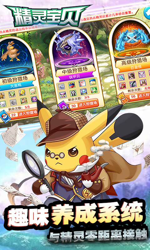 一款放置类手机游戏。游戏采用热门动漫口袋妖怪为题材。《精灵宝贝》结合RPG元素与宠物卡牌为一体,给玩家带来全新的超凡养成体验,从传统挂机游戏强调“战斗力”的一维玩法,衍变为强调“多样性”与“搭配性”的二维玩法。