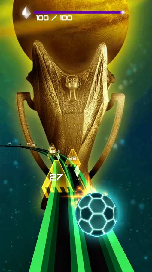 这款游戏要求球员通常在斜坡上追踪球,以追上斜坡的速度并克服比赛中的障碍。与其他令人上瘾的游戏和音乐一样,无尽运行需要玩家赶上节拍,只需按一下按钮即可移动车道。随著水平的提高,球的速度变得越来越快。所以即使在高斜坡时,选手也很难在比赛中赶上球。