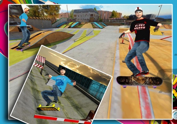 该应用程序包含了许多主题,如滑板,滑板公园,激流回旋滑板半管,垂直坡道和许多滑板技巧。