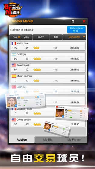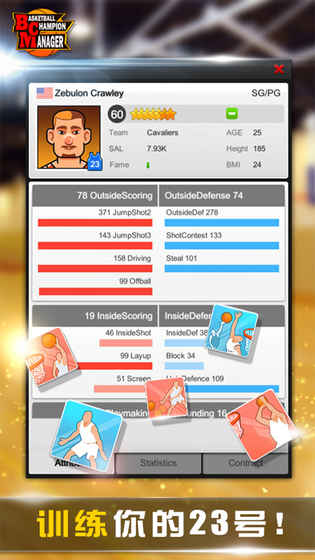《BCM篮球经理》这是一款非常不错的篮球经营游戏,纯正的经营玩法,因为有梦想,所以拼搏!打造一只强劲的篮球队伍,训练你的队员,让你的队伍日益强大,最终有实力去挑战各种强劲的明星球队!