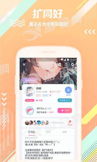 扩列是款简单好用的兴趣交友软件,随时随地帮你扩大朋友圈,助你结交更多新朋友,还可根据兴趣爱好寻找有缘的ta,有缘人就来扩列找,招募cp,和小伙伴一起亲密玩转其中,用二次元的兴趣来感染你我,养成友谊进行时!