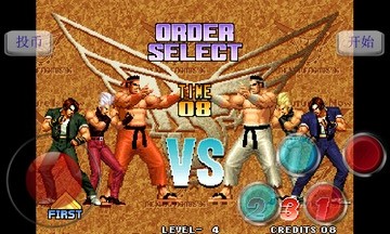 拳皇96是SNK公司于1996年推出的拳皇系列新作,在系统设定上96摒弃了前作成熟的系统设定,侧身回避这一设定修改为紧急回避,侧身回避只供指定人物使用,且无敌时间变短,同时追加了更加华丽的MAX超必杀。本街机特别推出蓝牙对战模式,可以和你的朋友通过蓝牙进行PK哦。同时为玩家免费提供了无敌、无限必杀、一击必晕及战前偷袭等热血模式。使用虚拟摇杆操作,玩起来一定会让你热血沸腾、畅快淋漓。