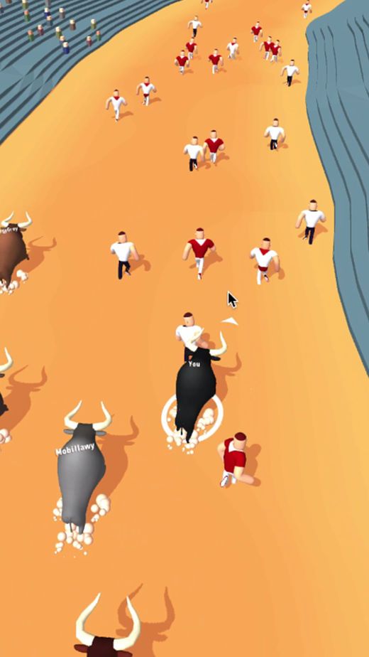 3、简单的指尖操控,疯狂的撞击,同时还可以将对手的公牛装出赛道,让自己努力生存到最后。