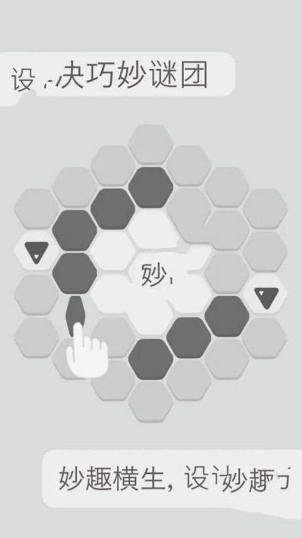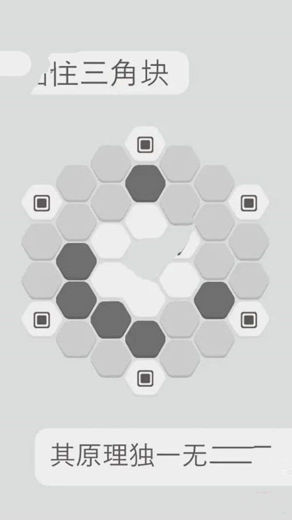2、关卡中是由许多的六边形组成的,难度越大的关卡上面的图形越久多,需要的步骤就越复杂。