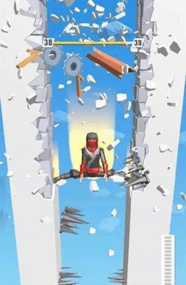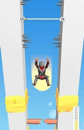 《蹬墙角 Kicking Wall》这是一款适合释放压力的休闲解压游戏,玩家操控高空中的小人急速下降,给你最真实的失重感,感受失重的刺激感。是一款非常不错的游戏。当玩家的能量条积满的时候就可以释放大招了,还有炫酷的特效场景;做出动作的时候就可以积累能量。下落的米数玩家在墙的边缘就可以看到,很方便。同时玩家需要注意到墙壁两边的陷进,拥有齿轮和铁刺。不要被碰到!