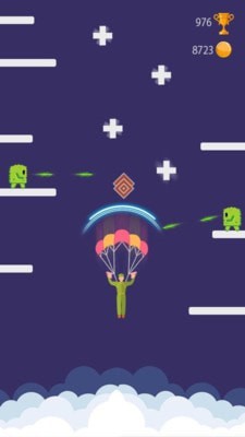 1、游戏新颖有趣,玩家在关卡中装备降落伞不断的移动,使用武器保护自己