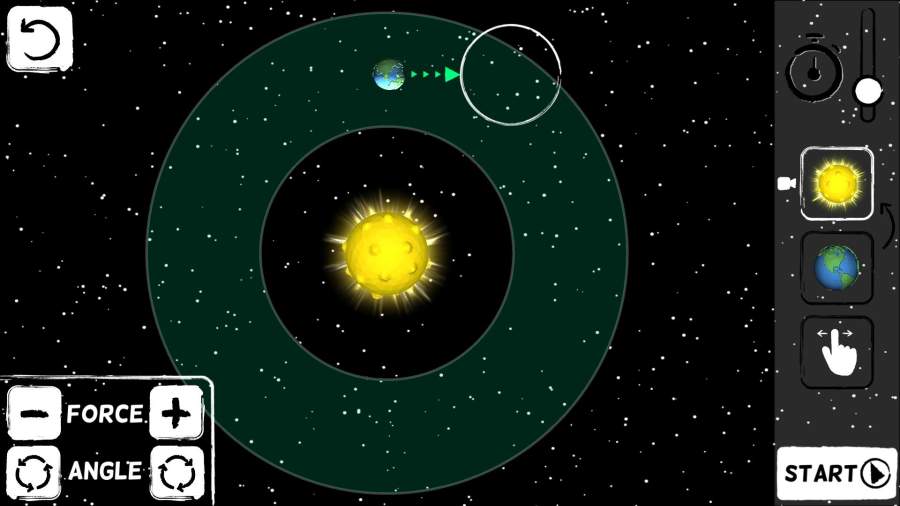 游戏是基于牛顿万有引力定律的重力模拟,您可以控制单个行星的速度和方向。你需要找到这颗行星的精确轨迹,让它围绕另一个天体运行。