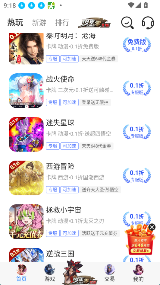 3. 对新上线游戏有专门推荐板块。